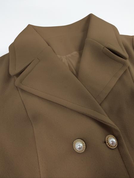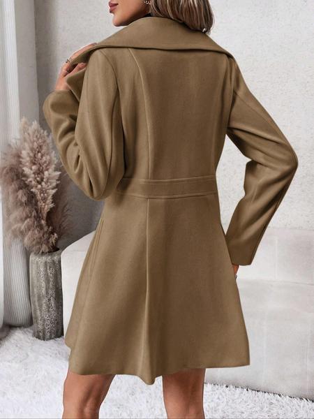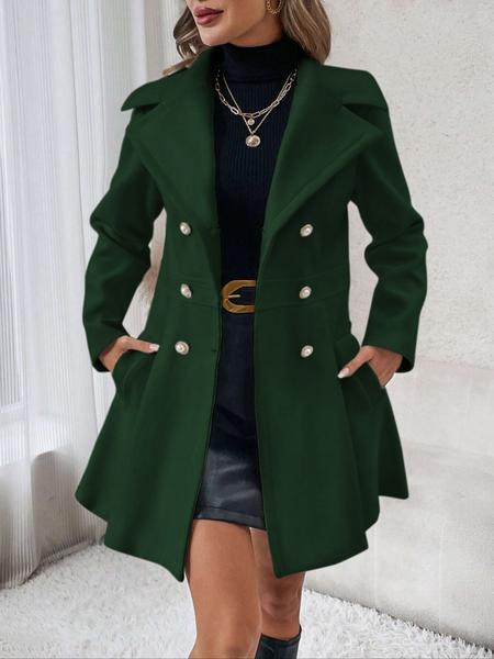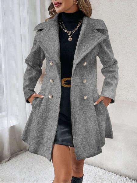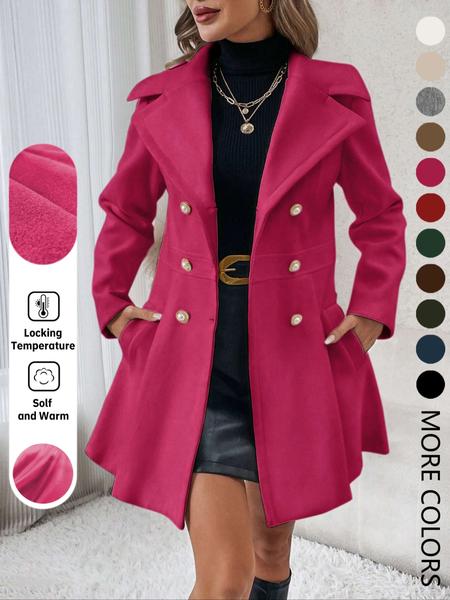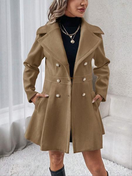 Women'S Solid Color Double Button Lapel Coat, Elegant Fashion Long Sleeve Pocket Design Coat for Daily Outdoor Wear, Women Clothing for Fall & Winter